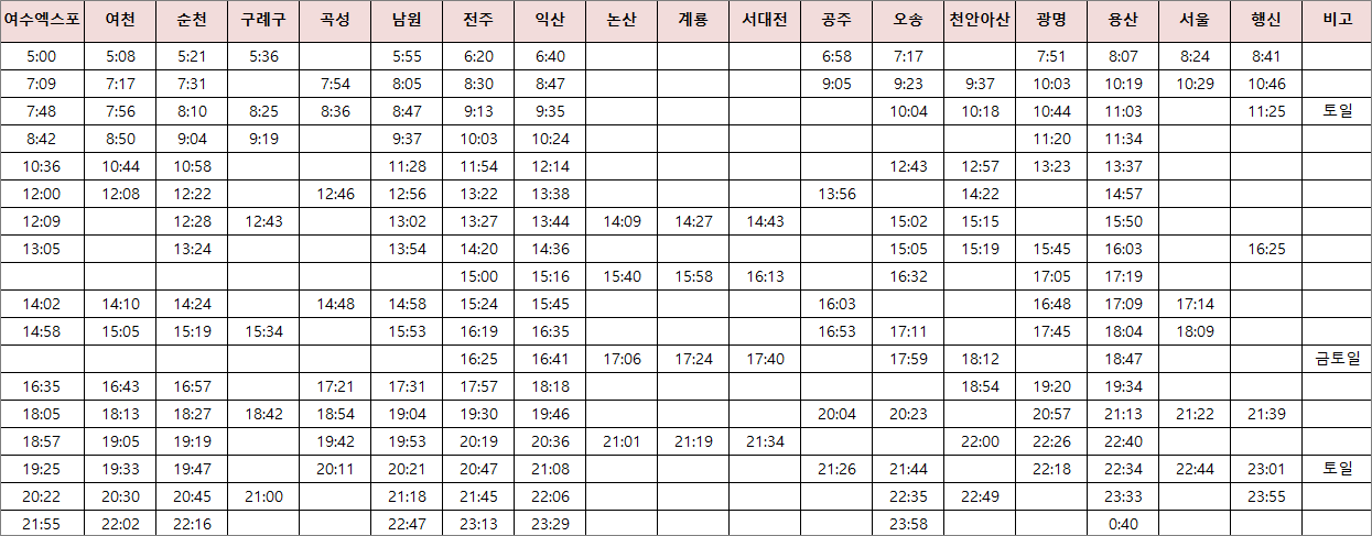 ■ 용산-여수 KTX 전라선 시간표